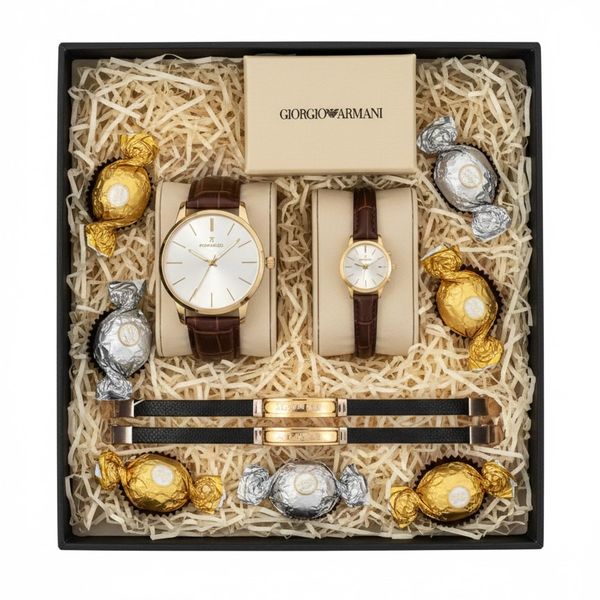 پک هدیه دونفره | ساعت و دستبند چرمی دونفره | ارسال رایگان