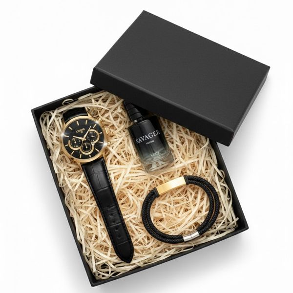 ست هدیه مردانه | ساعت و دستبند چرم + ادکلن